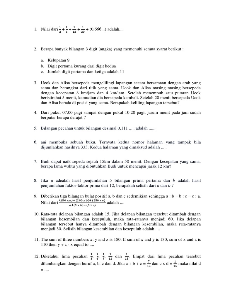Soal Dan Jawaban Operasi Hitung Bilangan Pecahan Belajar Dari Rumah Tvri Kelas 4 6 Sd 11 Mei 2020 Tribun Bali Sebuah mobil balap menempuh 60 km dalam waktu 30 menit.