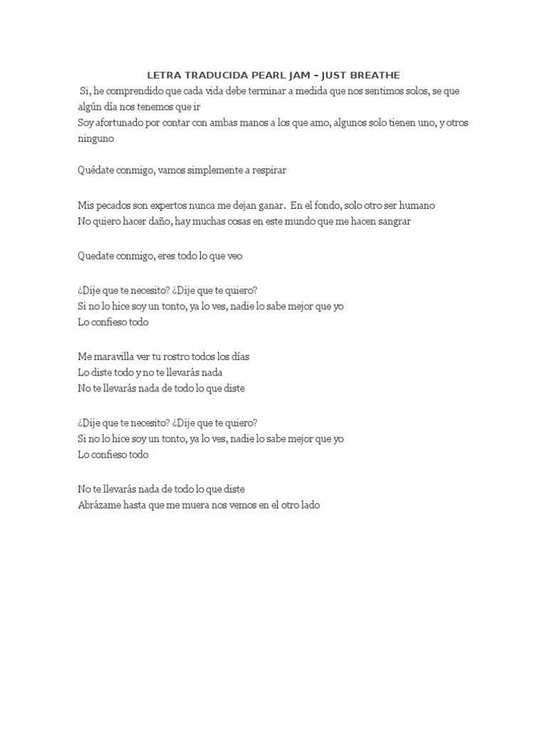 Pearl Jam Just Breathe Subtitulos Espanol Youtube Apart from the voice he was born with, he has to have a certain technical command, has to be trained how to breathe correctly. f.w:that is absolutely right, but breathing is a bit of a problem.