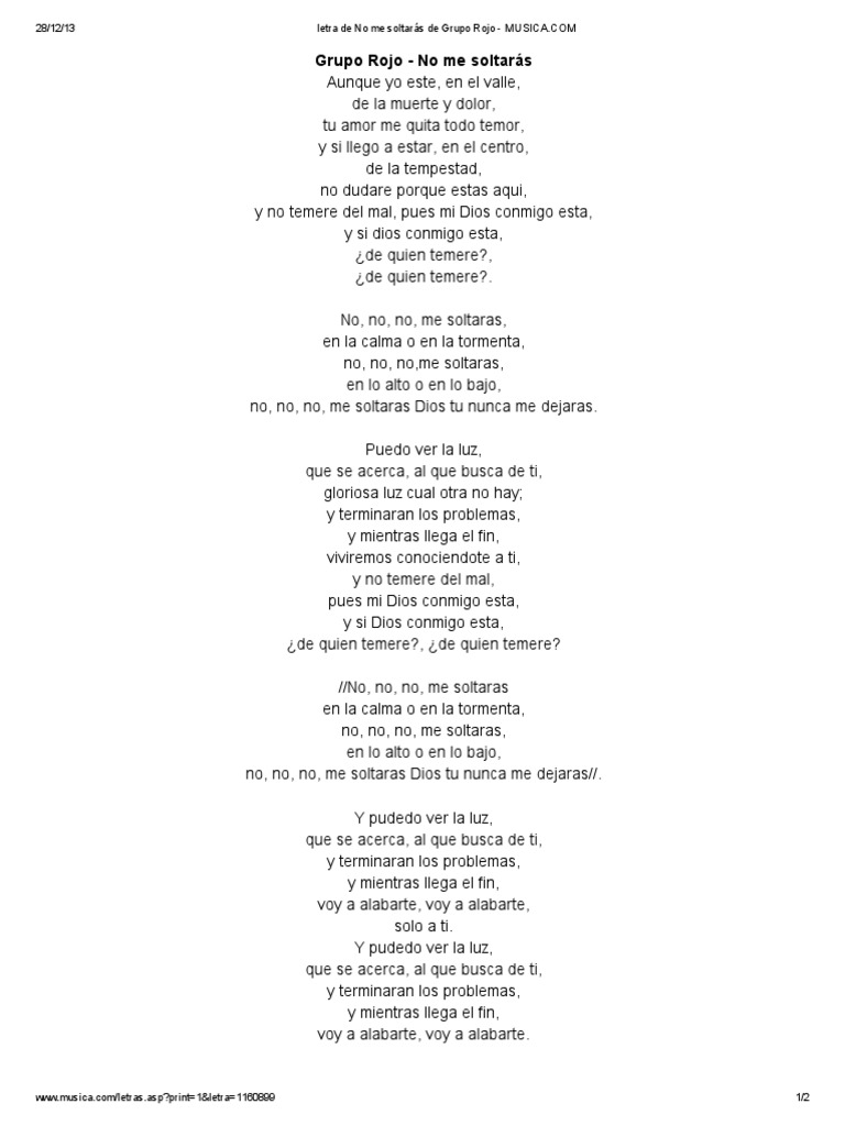 No Me Soltaras Pag 2 Rojo Music Chart Ibeat Music Music Charts Praise And Worship Sheet Music Puedo ver la luz que se acerca al que busca de ti gloriosa luz cual otra no hay y terminarán los problemas y mientras llega el fin viviremos conociéndote a ti.
